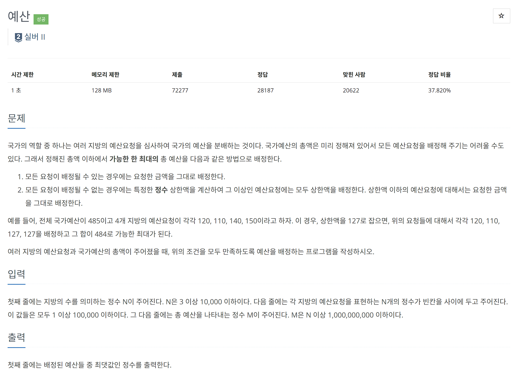 이번 문제는 2343번 기타 레슨 문제이다.접근법이 문제는 흔히 말하는 이분 탐색으로 정답을 찾는 문제 이다.즉, 정답이 될 수 있는 범위를 두고, 그 안에서 가능한지 아닌지를 판별하면서 범위를 좁혀나가는 방식으로 해결해야 한다.따라서 이 문제에서는 블루레이 크기를 정해놓고, 그 크기로 강의들을 나눴을 때 M개 이하로 블루레이가 필요한지 확인해야 한다. 여기서 이분탐색의 시작과 끝 값은 이러하다. start = 가장 긴 강의의 길이→ 블루레이 크기는 최소한 이 정도는 되어야 함end = 모든 강의의 총합 → 모든 강의를 하나에 담는다면 이게 최대그 후 mid 를 (start + end) / 2 로 설정하고 아래의 의사코드를 구현하면 된다.for (각 강의) { if (현재 누적 + 강의 > mid)..